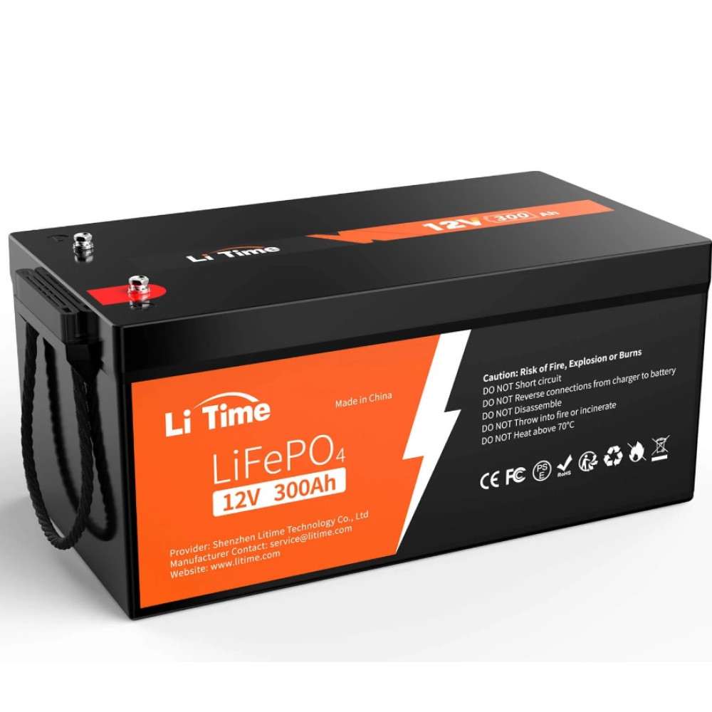 Літієвий акумулятор LiTime 12V 300Ah оснащений автомобільними елементами LiFePO4 класу A та сертифікованою за UL системою управління батареєю (BMS) на 200A, що забезпечує найвищу безпеку, енергоємність, потужність та стабільність. Ви можете розраховувати на надійне та довговічне живлення з мінімальним саморозрядом та захистом від перенапруги, переразряду, перевантаження струмом та короткого замикання. - Масштабована ємність та енергія: Оновіть своє джерело живлення за допомогою літій-іонного акумулятора LiFePO4, який забезпечує 3840 Вт*г енергії та підтримує навантаження потужністю 2560 Вт. Ідеально підходить для автономних систем, кемпінгів на колесах, сонячних систем та аварійного резервного живлення. Підключайте до 4 акумуляторів паралельно та 4 послідовно для досягнення потужності 40,96 кВт та енергії 61,44 кВт*г (4П4П) – достатньої для всіх ваших пристроїв та приладів.