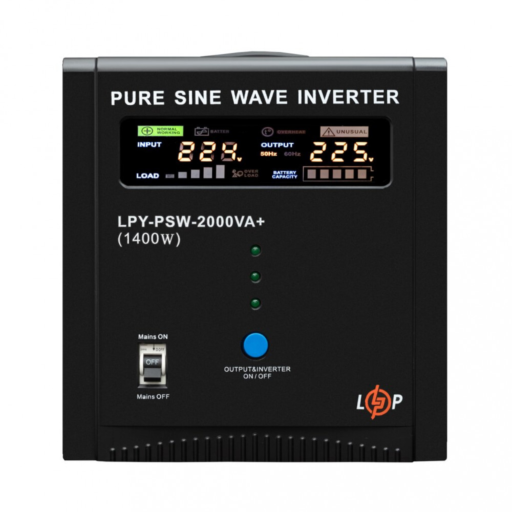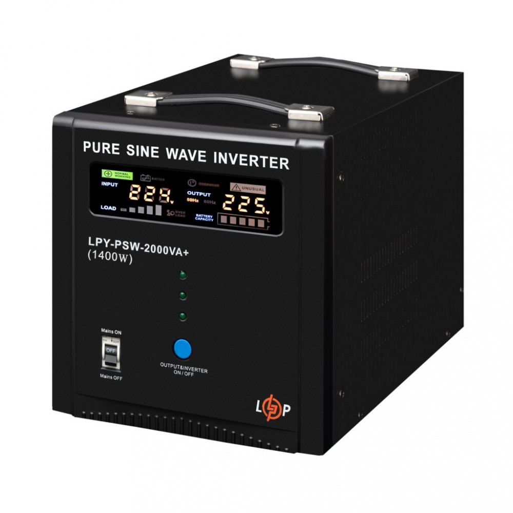 Характеристики: ДБЖ LogicPower LPY-PSW-2000VA+ (1400Вт) 10A/20A з правильною синусоїдою 24V (22873)