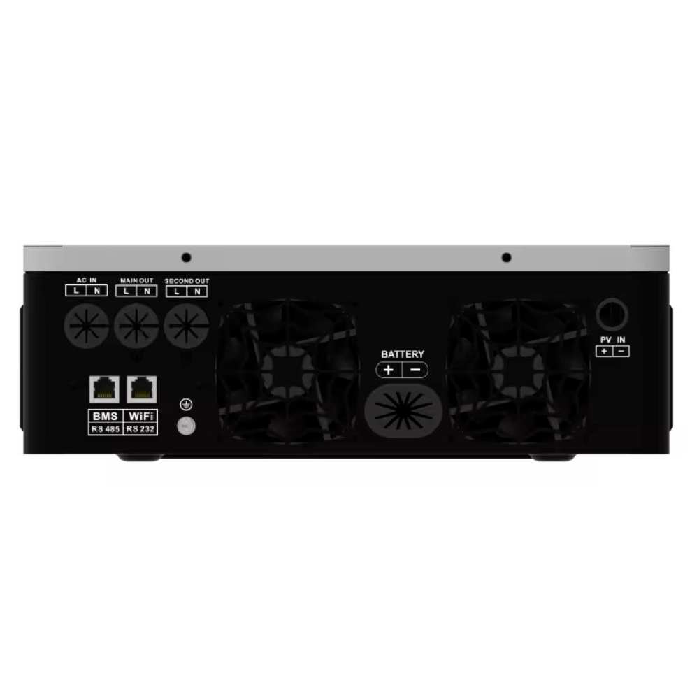 Современные интерфейсы: Наличие разъемов RS232, RS485, WIFI, GPRS и возможности работы с литиевыми батареями позволяет интегрировать инвертор в современные системы управления и мониторинга.