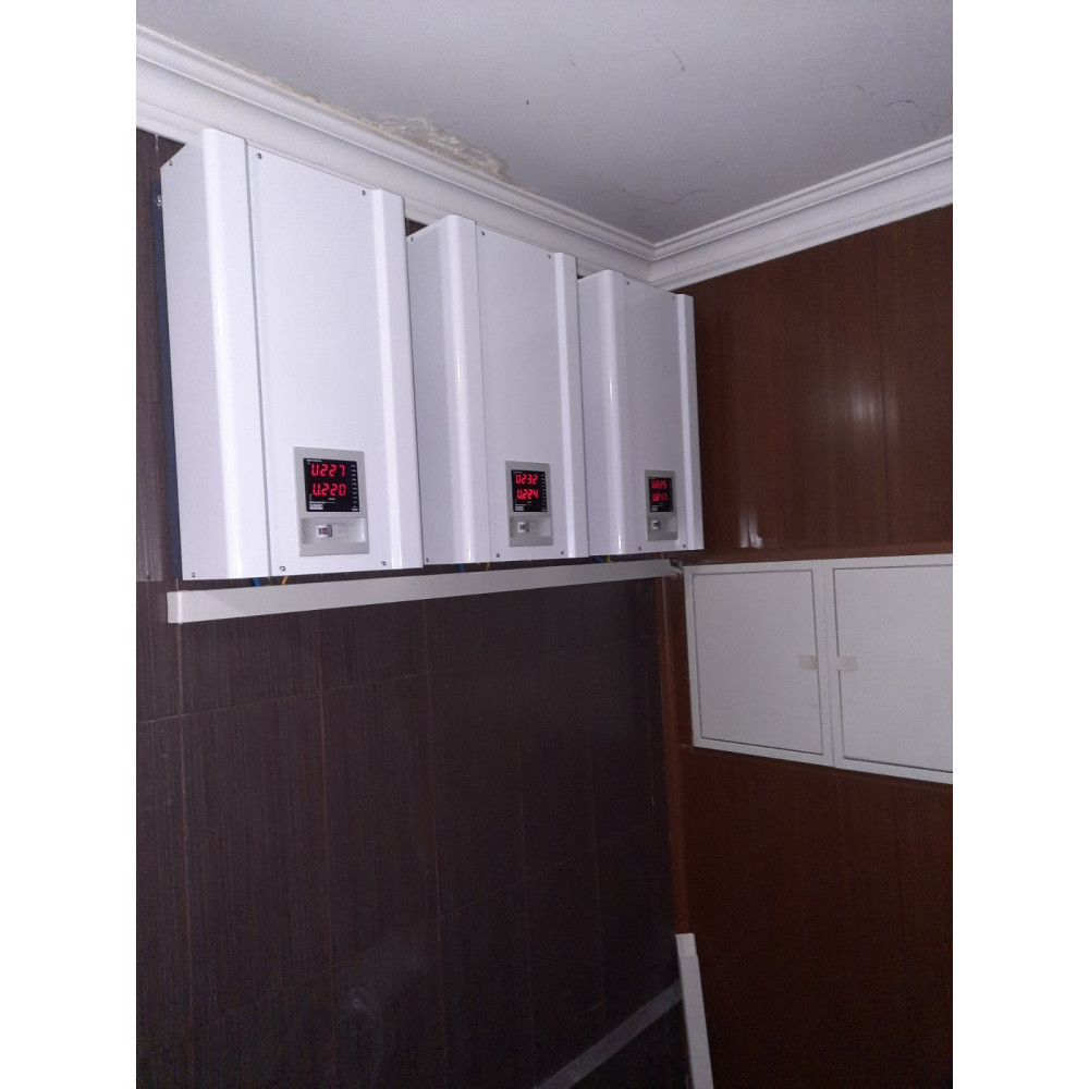 Стабилизаторы представлены в металлическом пожаробезопасном корпусе, который оснащен светодиодным дисплеем, для индикации параметров в реальном времени: