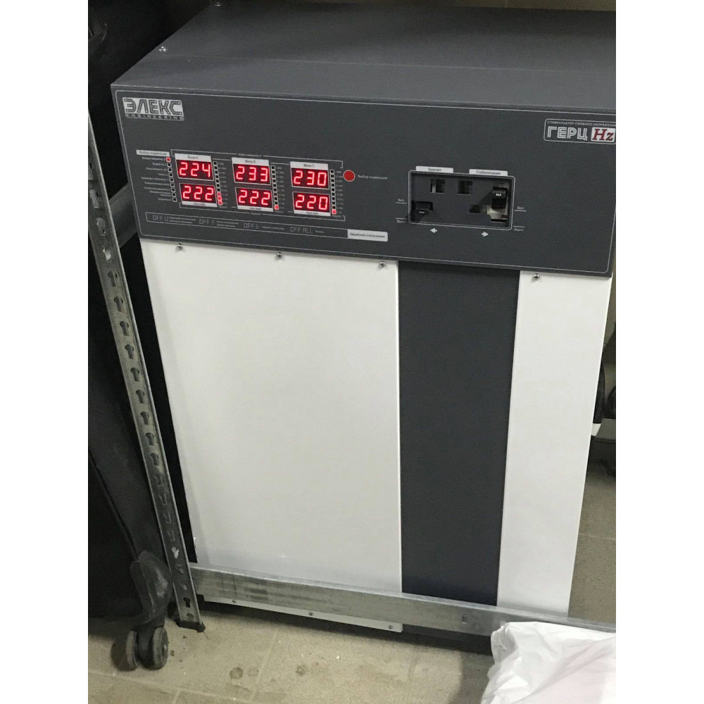 К особенностям данного стабилизатора можно отнести двойной LED-индикатор на фазу, линейная полоса загрузки, наличие механического транзита (байпас), напольное исполнение, наличие входных и выходных фильтров для защиты от высокочастотных помех, бесшумную работу за счет использования тороидальных трансформаторов и тиристорных ключей.