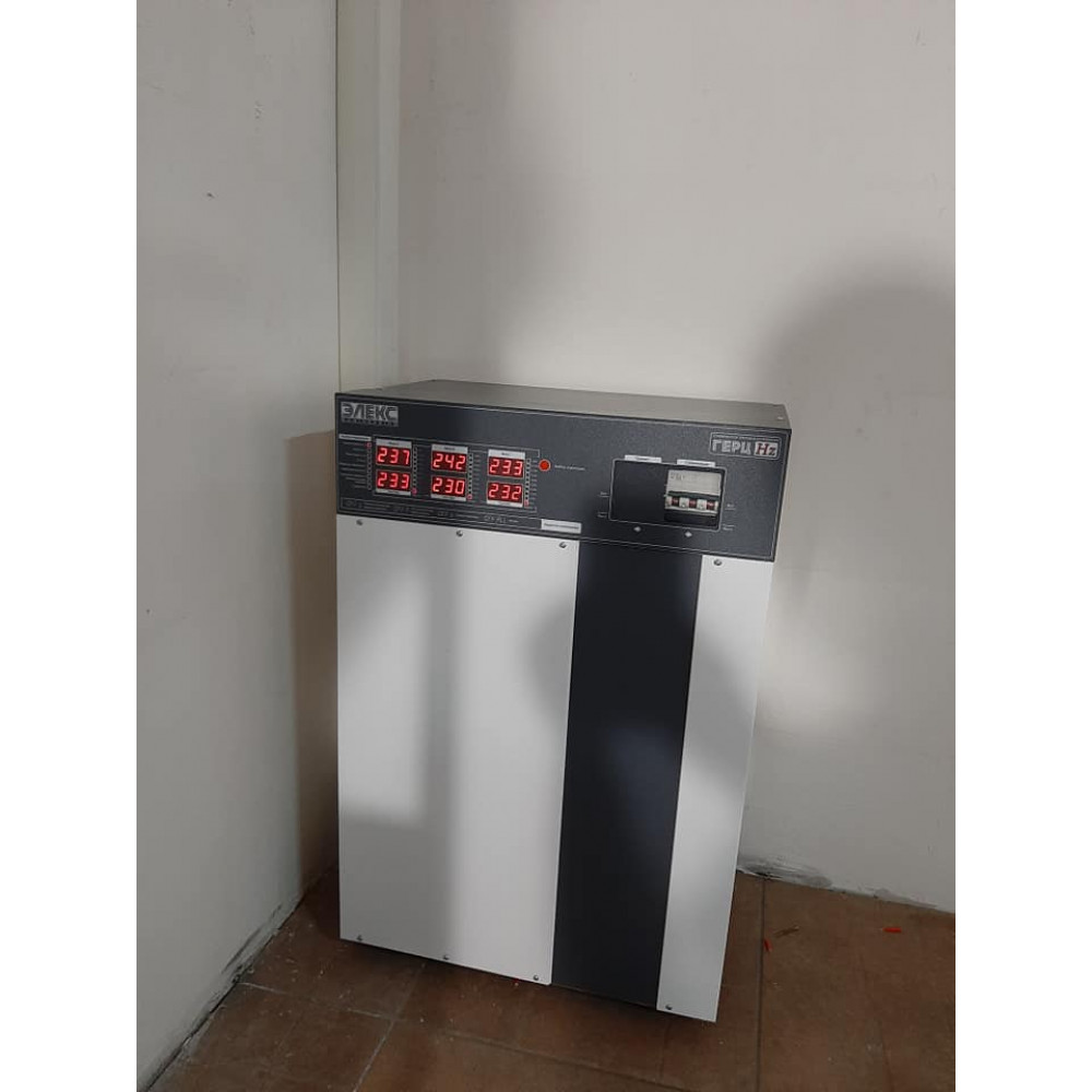 Трехфазный стабилизатор напряжения Элекс ГЕРЦ У 16-3/40 v3.0 предназначен для работы в электрических сетях с колебаниями напряжения от 150 до 260В. В этом диапазоне аппарат гарантированно выдает на выходе напряжение в рамках 220±2.3-2.5%, что обеспечивается за счет использования 16 ступеней стабилизации соответственно. Модельный ряд Герц по мощности может быть на 16.5, 22.5, 27, 33, 41 и 53 кВт, что соответствует рабочему току на 25, 32 ,40, 50, 63 и 80А на фазу.