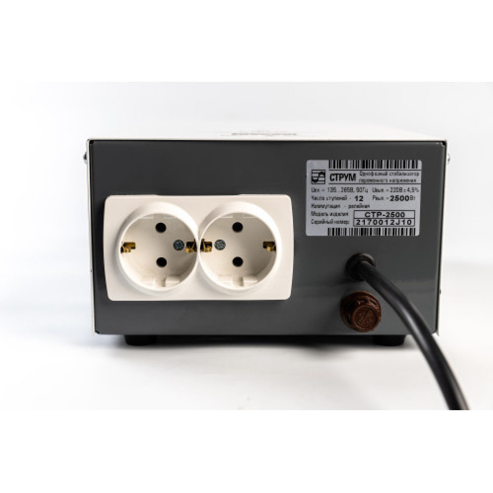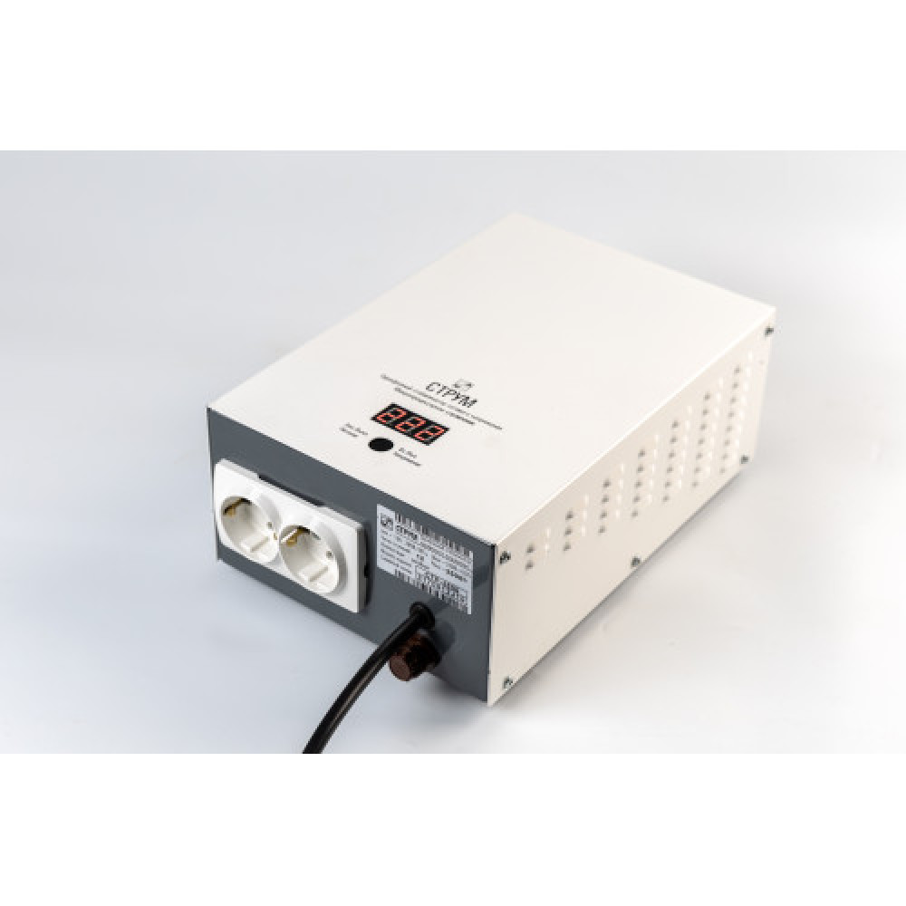 Стабилизатор напряжения СТРУМ СтР-2500 предназначен для работы с бытовыми и промышленными электроприборами мощностью от 300Вт до 3000Вт от сети переменного тока 220В/50Гц; обеспечивает поддержку напряжения на уровне 220 В с точностью ±3,5% в рабочем диапазоне входных напряжений, обеспечивает защиту от повышенного и пониженного напряжения сети.