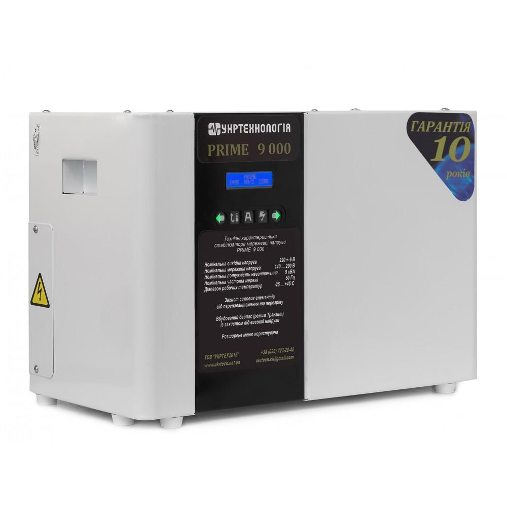 Стабілізатор сімісторного типу Prime 9000 призначений для безперервного використання в громадських місцях, в житлових, комерційних і виробничих зонах.