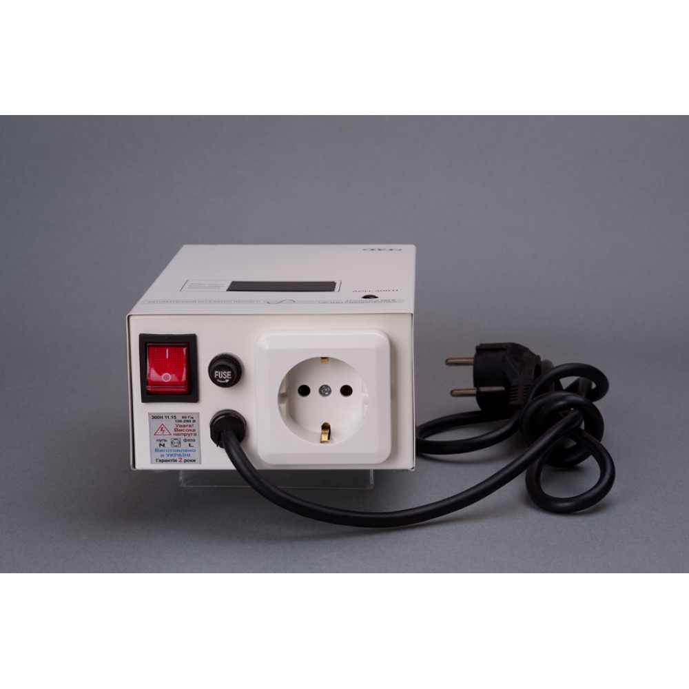АСН 350С оснащен индикатором напряжения, цифровым измерителем, входного напряжения и мощности потребления подключенного электроприбора. Оборудован защитой от перегрузок, тепловой защитой, а также защитой от 380В